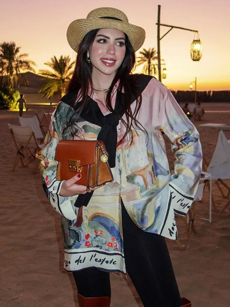 1.Artistic Print Design:Showcases a unique and artistic print with picturesque scenes, adding an elegant and distinctive touch to your outfit.