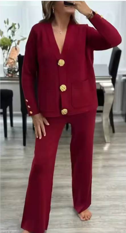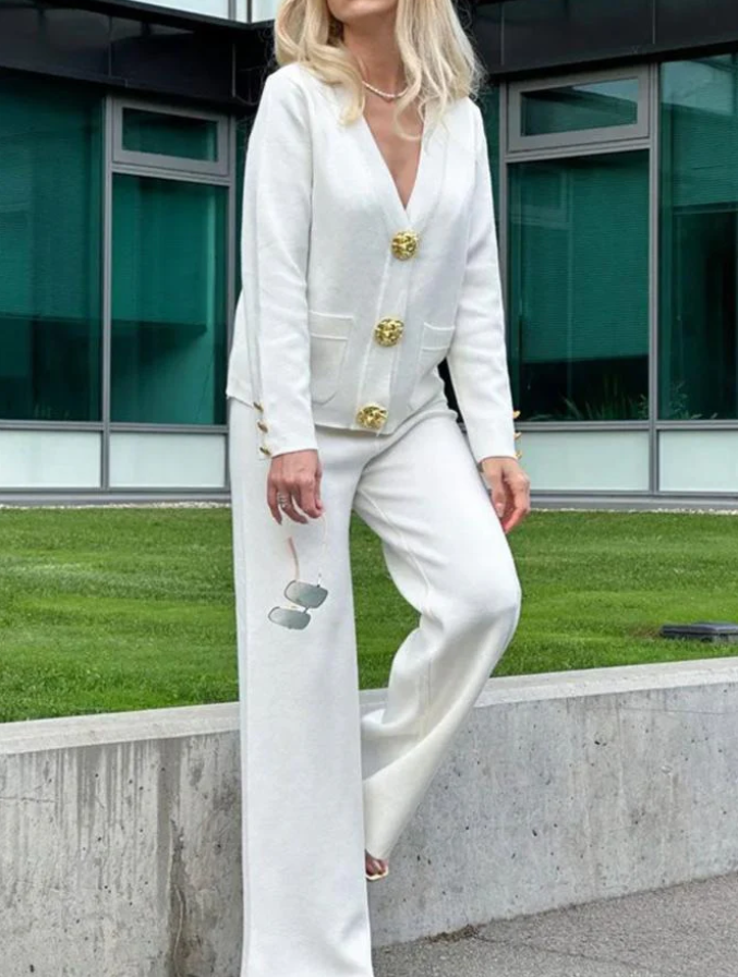 Elevate your everyday wardrobe with the Jennifer 2-Piece Set, designed for women who value both style and comfort. With its relaxed fit, chic wide-leg pants, and statement gold buttons, this set is the perfect blend of elegance and ease.