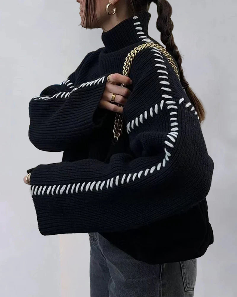 Loose Casual Chic Contrast Patchwork Sweater